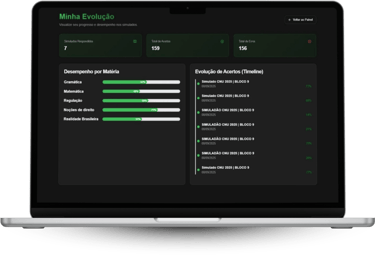 O único sistema que aponta automaticamente onde seus estudos devem focar e acompanha a sua evolução a cada atividade feita na plataforma.