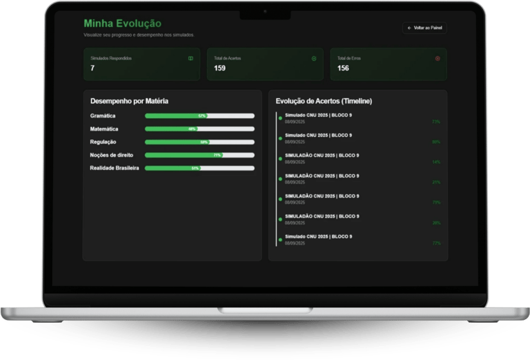 Acompanhe com precisão seu desempenho por matéria e como foi seu aproveitamento da prova.